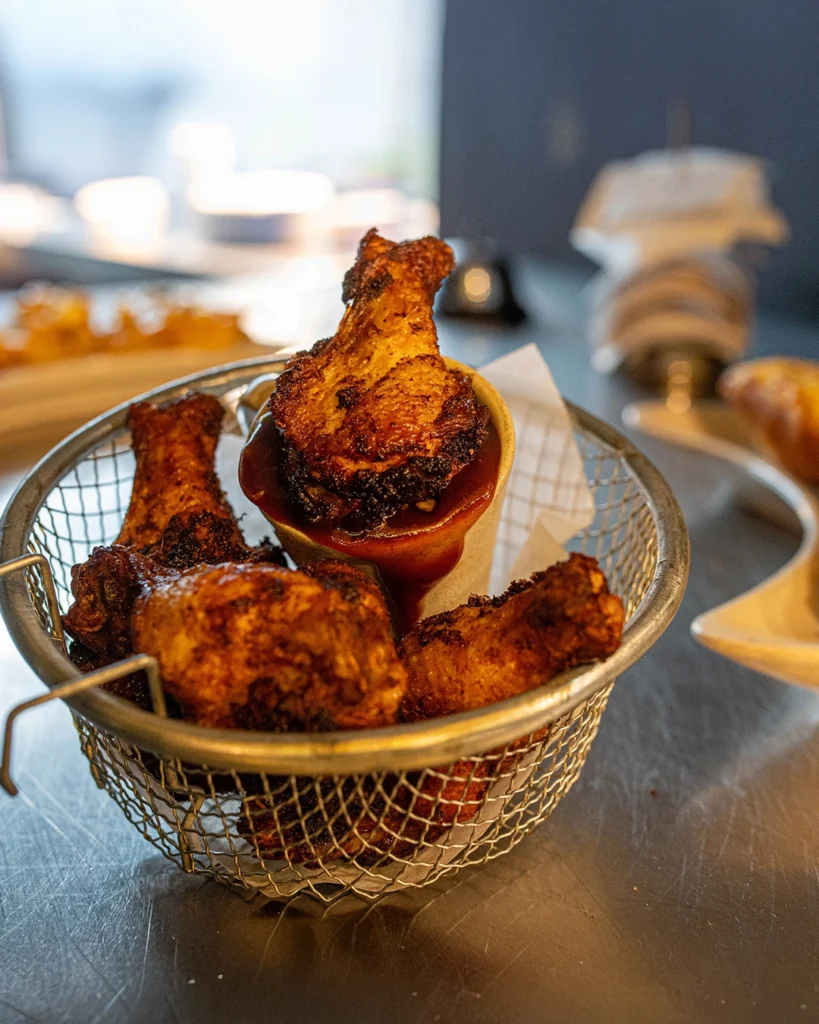 -Todos os hambúrgueres são acompanhados com palitos de batata rústica aromatizados com ervas e molho salsa e alho.